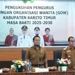 TAMIANG LAYANG — Wakil Bupati Barito Timur Adi Mula Nakalelu menegaskan bahwa Gabungan Organisasi Wanita (GOW) memiliki peran strategis sebagai garda terdepan dalam pemberdayaan perempuan, peningkatan kesejahteraan keluarga, serta pembinaan generasi muda. Penegasan tersebut disampaikannya saat mengukuhkan Pengurus GOW Kabupaten Barito Timur, Senin (15/12/2025), di Ruang Rapat Bupati Barito Timur. Pengukuhan pengurus GOW Kabupaten Barito Timur